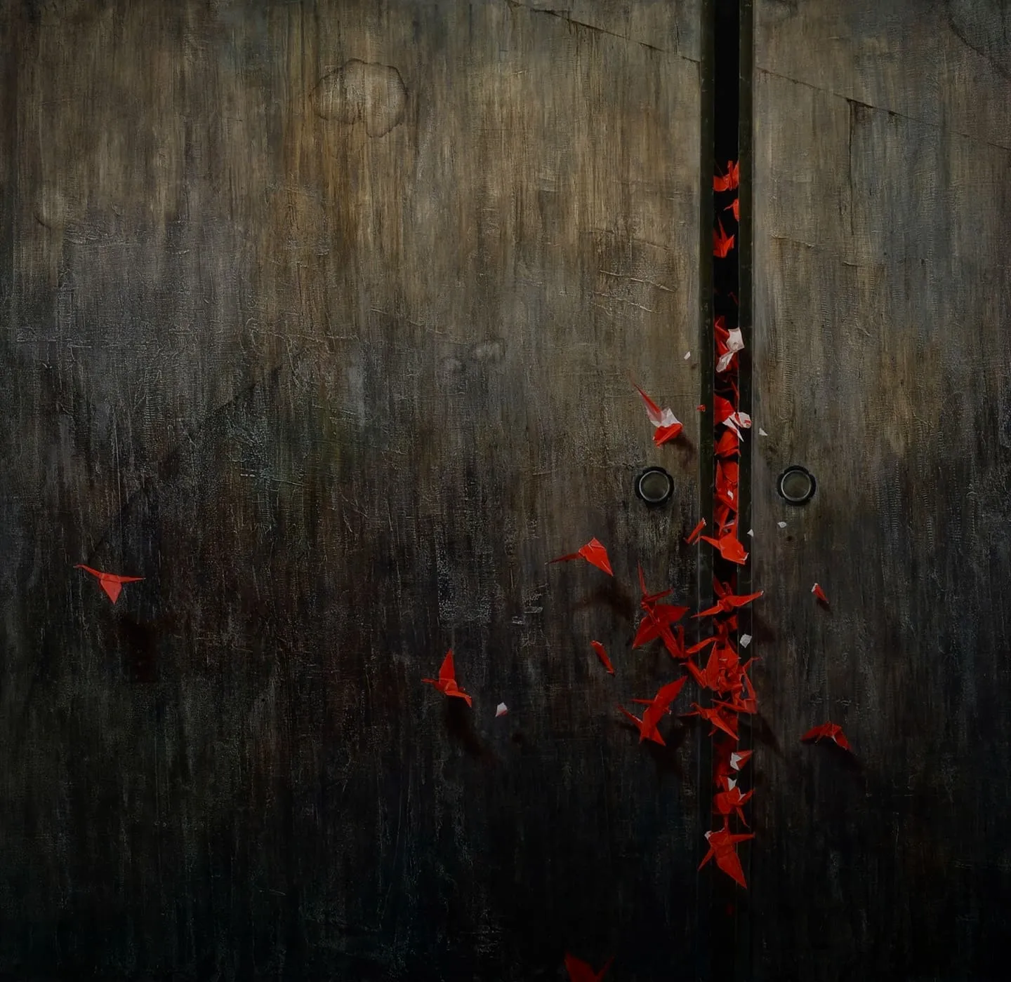 折り紙の持つ緻密なデザインや独特の風合いを捉え、改めて平面に描写することで、この国に生まれた証や生き方の表現に繋がると思い筆を執った。
